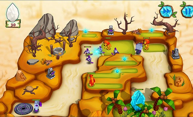 ¡No te metas con la jungla! Ayuda a los animales a defender los cristales mágicos de los extraterrestres invasores en: Jungle vs. Droids.